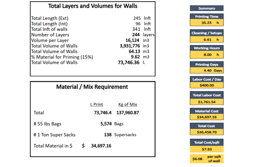 We estimate material and labor costs to help builders, architects, and 3DCP